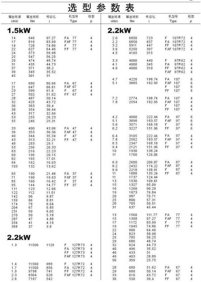 選型參數表1.5kW(續),2.2kW